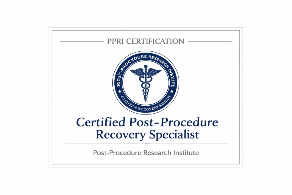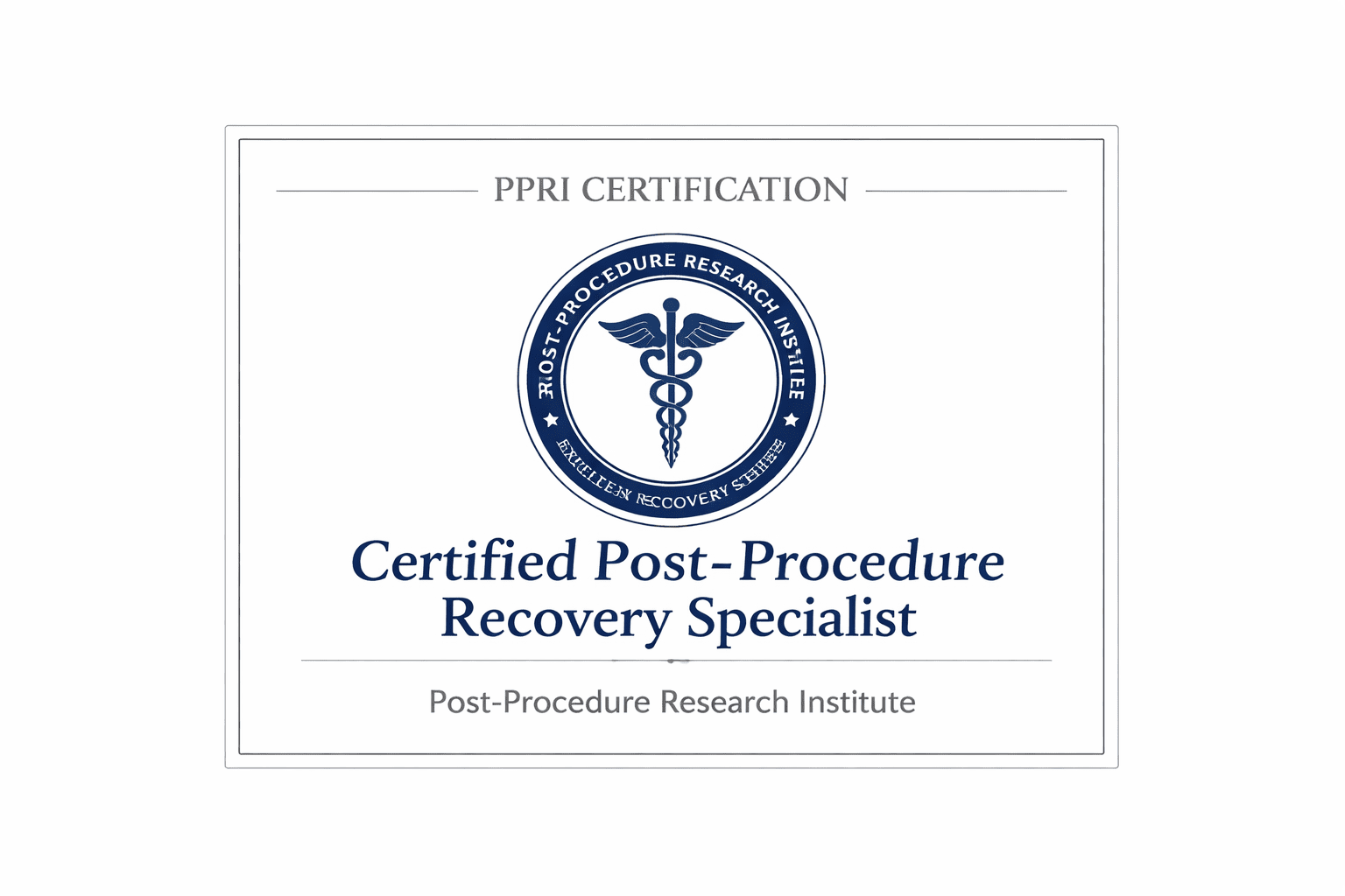 “This individual is fully certified as a Post-Procedure Recovery Specialist and is in good standing with the Post-Procedure Research Institute (“PPRI”). The PPRI designation indicates that this individual has successfully completed a rigorous course of training in the science of post-procedure recovery sponsored by the Institute.
